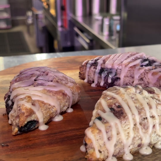 Start your day with the simple pleasure of a freshly baked scone — golden, buttery, and perfectly tender. Each scone is made from scratch in small batches using quality ingredients for that classic homemade taste.